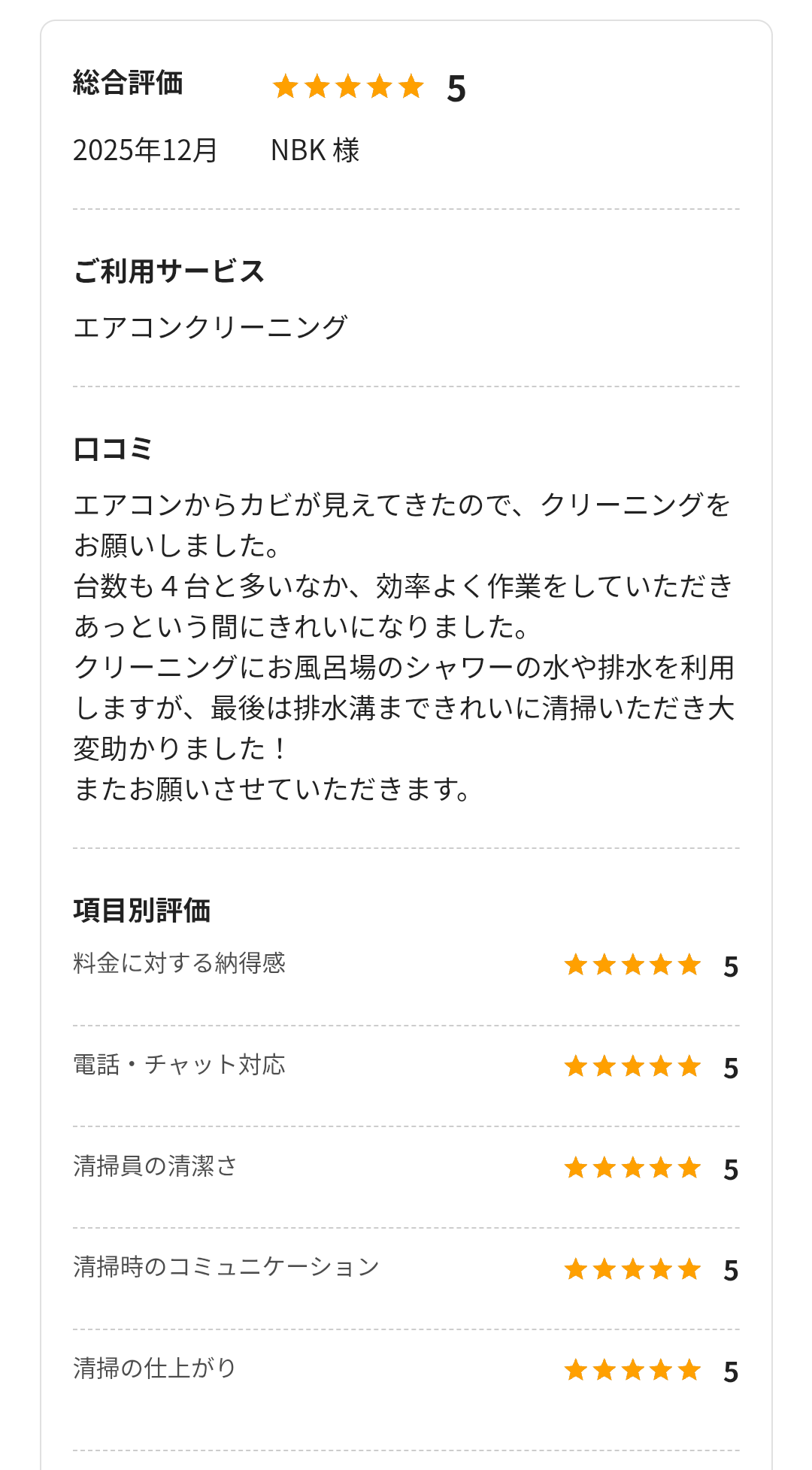 洗濯物のにおいに悩むご家庭、 エアコンのカビで咳に困るお子さま、 赤ちゃんの肌を守りたい親御さん—— その暮らしの“根っこ”を守るために、 私は洗濯機とエアコンに向き合い続けています。